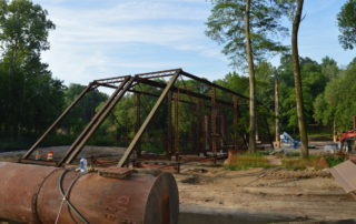 The building of a steel bridge was commissioned by the Saline County Quorum Court in 1889 and the construction of the steel bridge was completed in 1891 by the lowest bidder, Youngstown Bridge Company of Youngstown, Ohio. The company’s bid was for $7000. The steel bridge was in use until 1974, when a truck loaded down with concrete blocks attempted to travel across. The wooden floor of the bridge collapsed and areas of the steel frame were damaged. The “Old River Bridge” still stands were it was erected 124 years ago but has been closed and is in disrepair, until now.