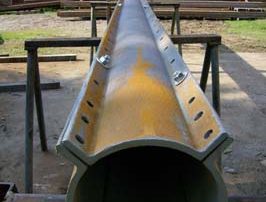 They are currently working on eight horizontal columns, each 27 feet long. They form the rectangle-shaped top of the bridge. Six vertical columns and four end columns will be next in the project.