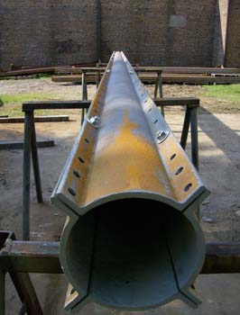 They are currently working on eight horizontal columns, each 27 feet long. They form the rectangle-shaped top of the bridge. Six vertical columns and four end columns will be next in the project.