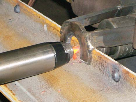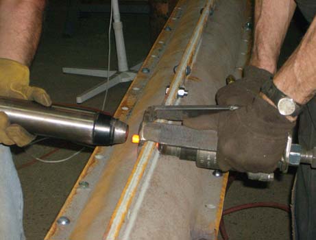 The bridge builders used a sledgehammer to drive in the rivets. Their successors are using a heavy pneumatic rivet gun.