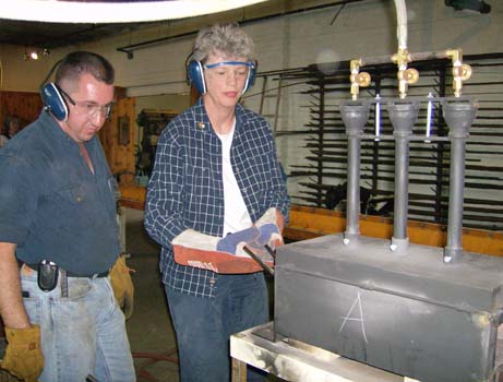 Each chubby steel rivet, measuring a half-inch around and 1 3 /4 inches long, baked inside a gas-fueled forge that glowed yellow-hot.